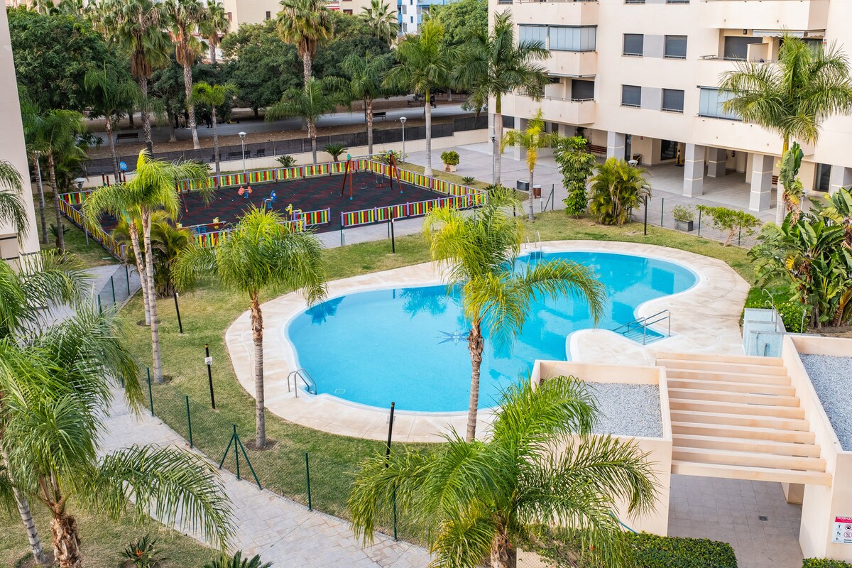 Apartamento en Torre del Mar (Málaga). Excelentes vistas. Muy luminoso. Cocina independiente. Piscina recientemente reformada (apertura aproximada desde el 14/06 al 14/09). Acceso adaptado. Aire Acondicionado/ Calefacción. Zona de aparcamiento privada. Pista de tenis. Zonas verdes. Minogolf. Muy céntrico, situado a 300 metros del paseo de Larios y de la playa. Orientación noreste. Wifi. TV por satélite. Terraza. Ideal familias y nómadas digitales. Alquiler de temporada.