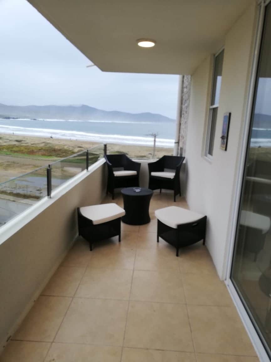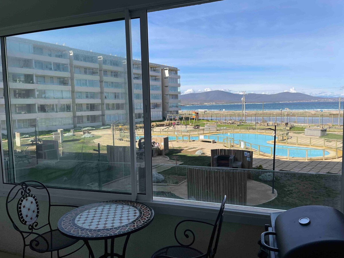 Departamento a orillas del mar, ideal para salir a caminar, nadar, bucear, surf-ear. Cercano a Restaurantes Pub, supermercados, ferias artesanales. Ideal para olvidarse de manejar. Cercano a parque nacional Puquen. Cuenta con Piscina, jacuzzi, juegos infantiles, taca- tacas Quinchos junto area de piscina. Cuenta con parrilla a gas, terraza cerrada y muebles de terraza
