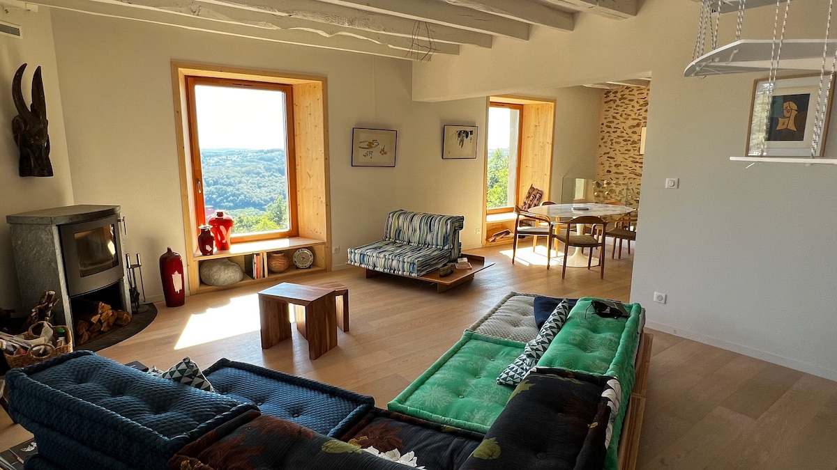 ¡Ven para el otoño-invierno 2025/6 con un 30 % de descuento! (Ya aplicado) Una encantadora granja situada en 10 hectáreas de terreno, en una posición envidiable con vistas excepcionales. Para disfrutar en cualquier época del año. Busca orquídeas en primavera; relájate junto a la piscina infinita (compartida) en verano; disfruta de carnes asadas y castañas en la chimenea en otoño o acurrúcate junto al árbol de Navidad con la familia en invierno. Saint Robert, uno de "Les Plus Beaux Villages des France", está a solo unos minutos o a 20 minutos a pie.