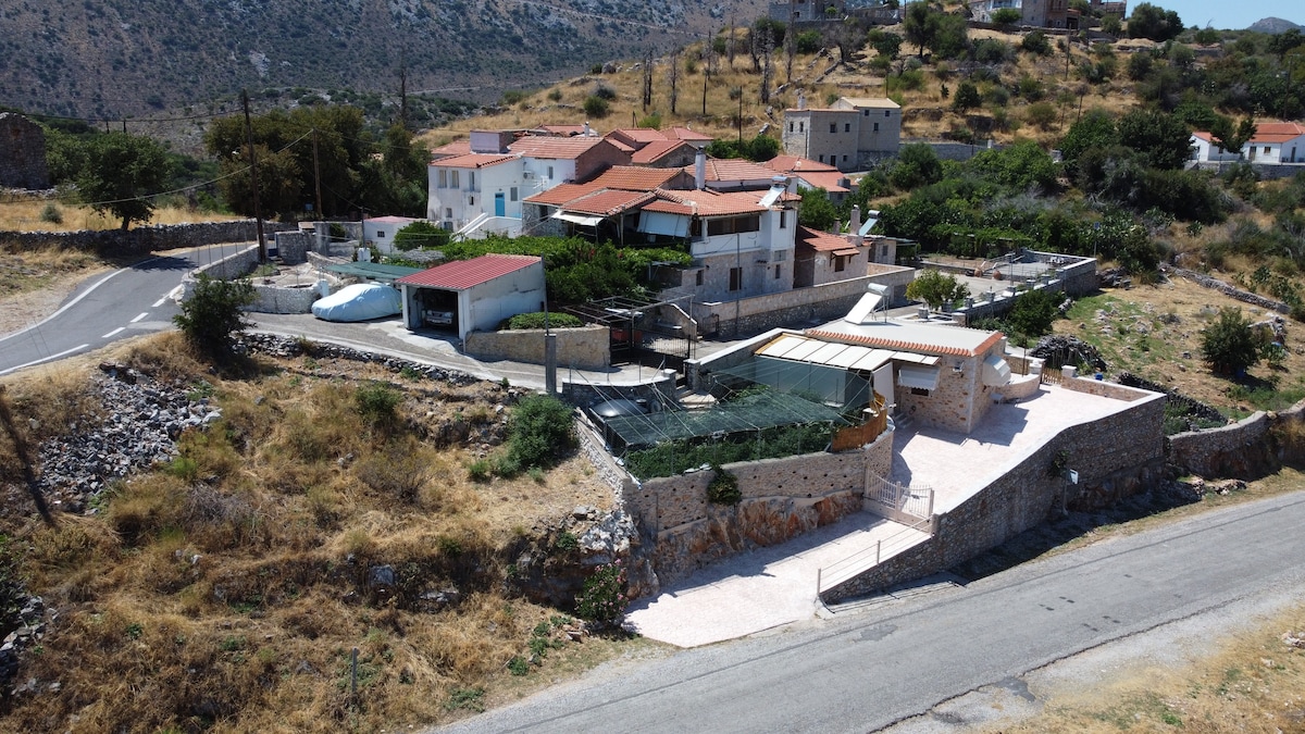 Está construida en la cima de una ladera de un hermoso olivar, donde el sol se ve desde la mañana hasta el atardecer. Está rodeada de terrazas de piedra cubiertas y abiertas, con impresionantes vistas al azul del mar y el cielo, la verde llanura de Montenegro y la mágica puesta de sol en las montañas de Mani y Taygetos. Ideal para una estancia relajante, cerca de playas maravillosas.