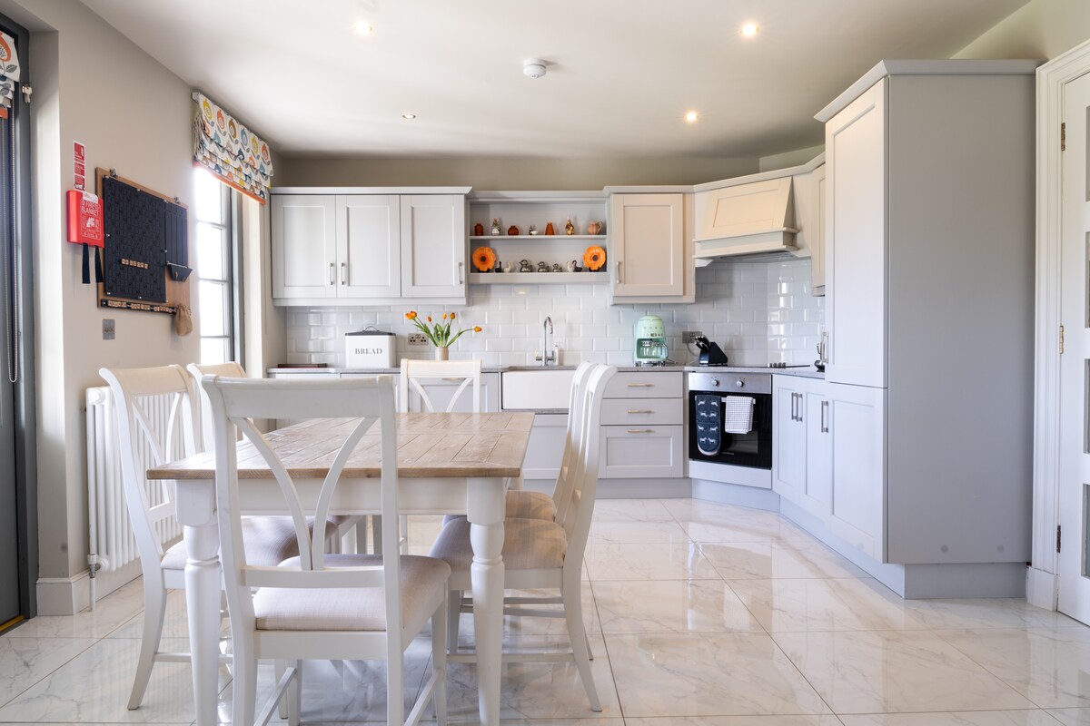 Esta moderna y lujosa casa de campo es realmente especial. Se encuentra en las montañas Tawnawully junto a Lough Eske. Se encuentra en 12 acres con un río que lo atraviesa y una cascada junto a la casa de campo. A solo 15 minutos en coche de la ciudad de Donegal, que tiene algunos restaurantes y bares muy agradables. Hay un castillo para explorar en la ciudad y un maravilloso pueblo de artesanía con una cafetería muy buena. Estamos a diez minutos en coche de Harveys Point y a doce minutos del castillo de Lough Eske, ambos hoteles de 5* de renombre.