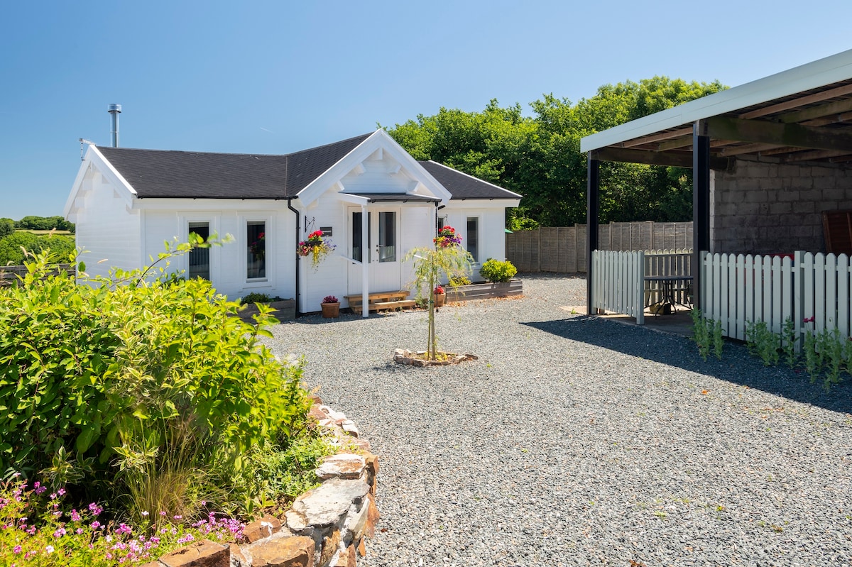 Un chalet independiente con vistas a un campo y un bosque, en el campo de Devon, pero a solo ocho millas de la costa y a una milla del pueblo de Bradworthy. La cabaña tiene una amplia sala de estar/comedor, cocina, cuarto de ducha y dos dormitorios, uno con una cama tamaño king y el otro con una litera de 3 pies. El jardín cerrado tiene una mesa de pícnic y barbacoa, también tendedero. Esta es una base ideal para caminar, montar en bicicleta y recorrer el norte de Devon y el norte de Cornualles.