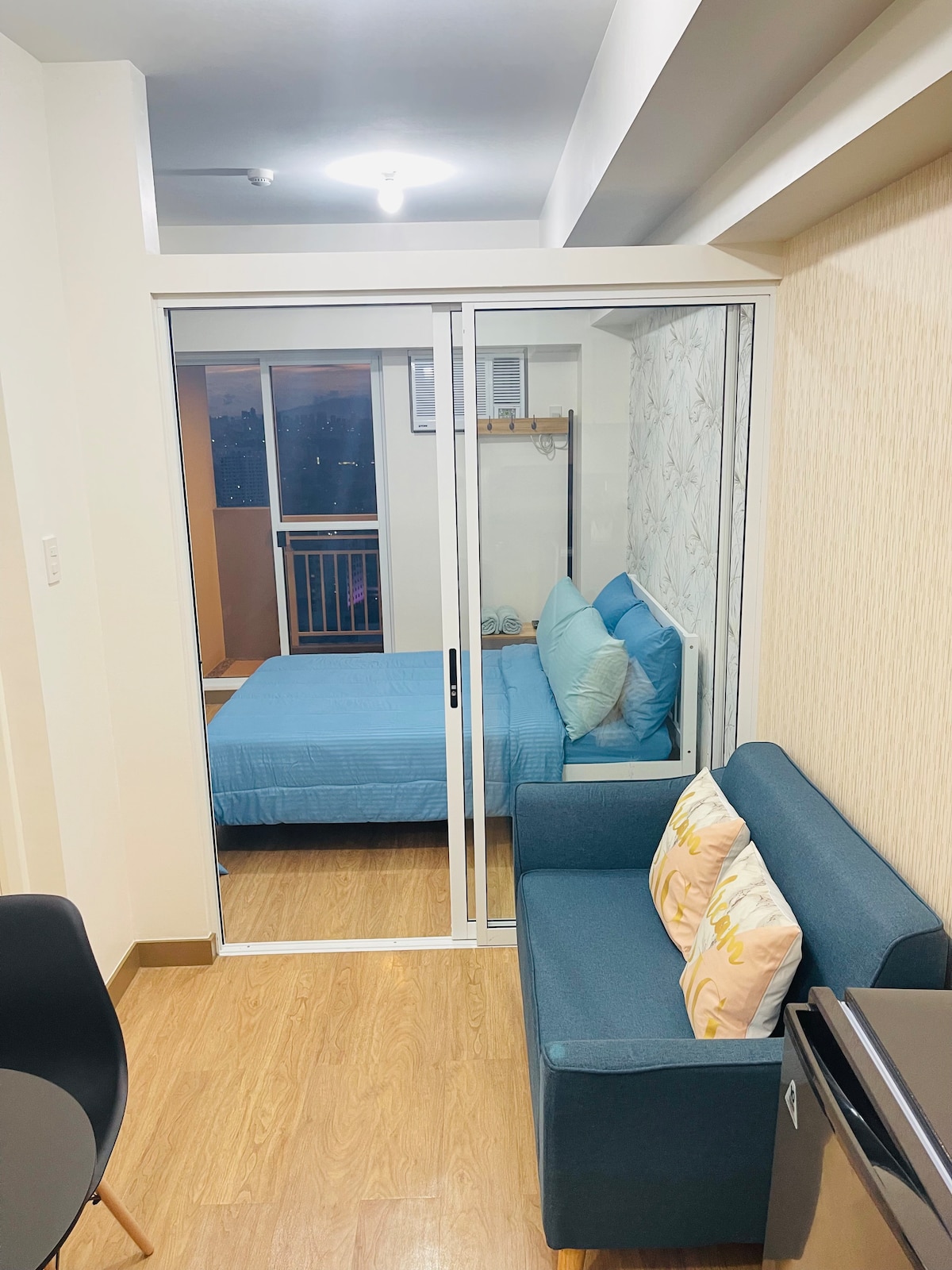 Moderna casa inteligente de 1 dormitorio en Infina Towers | Planta baja 🏠✨ Espacio de alta tecnología de 28 metros cuadrados para vacaciones en casa o trabajar desde casa en un raro piso con jardín. ¡Balcón con vista a la piscina! ⛲ ✅ LO MÁS DESTACABLE: 🔹 Auto registro de llegada: cerradura inteligente 🔑 🔹 Wifi: fibra de 200 mbps ⚡ 🔹 Salud: NanoeX Aircon (mata virus) 🌬️🧼 🔹 Ubicación: a 3-5 minutos caminando de LRT2 Anonas 🚶 💰 COMPLEMENTOS PAGOS: 🚗 Estacionamiento: 250/día (automóvil) | 150 (motocicleta) 🐾 Tarifa por mascota: 300/mascota (menos de 5 kg) 🏊 Piscina: 200 por persona (SOLO lunes, martes, miércoles y viernes) ¡Reserva Muffin's Place hoy mismo! 🧁