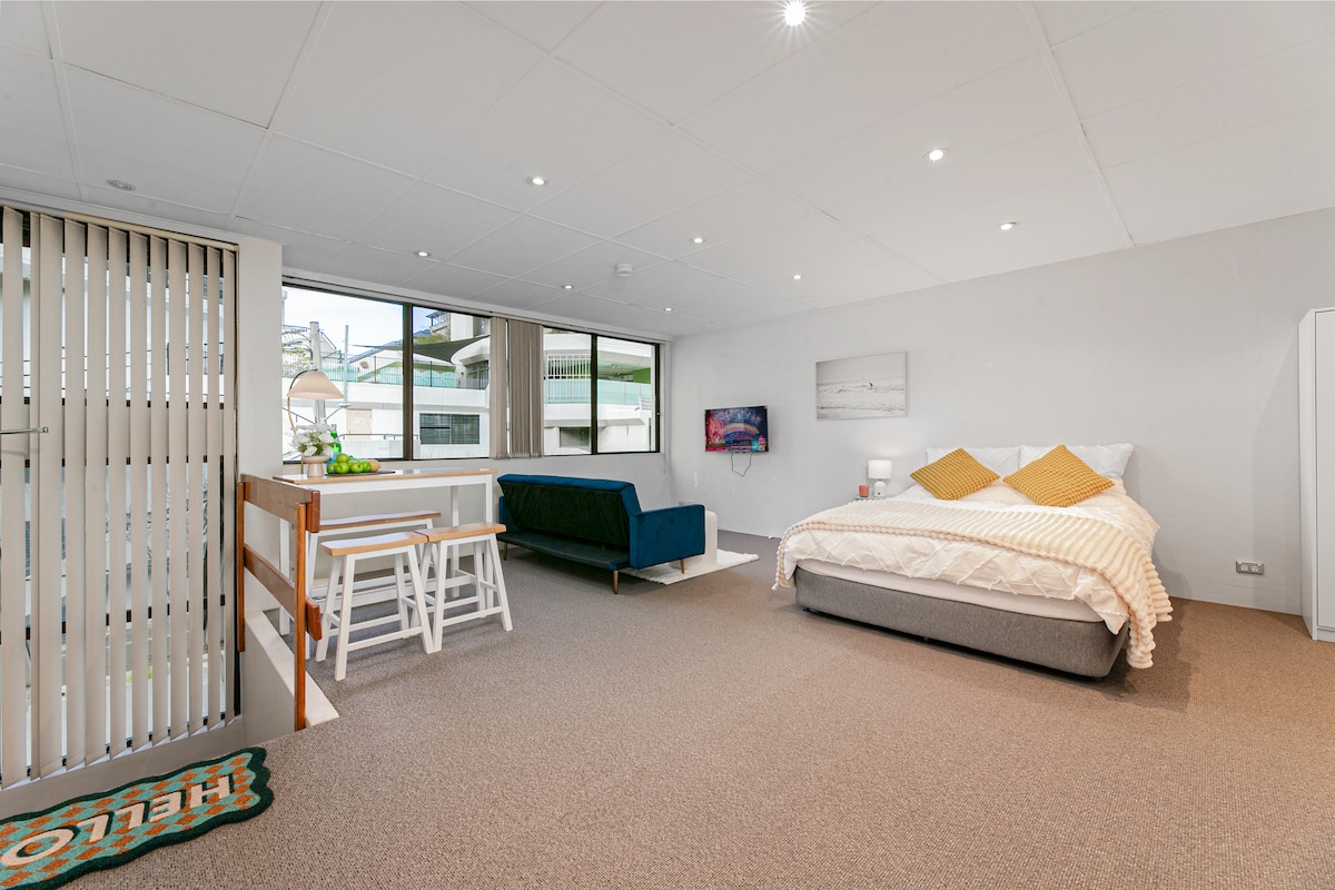 Descubre nuestro estudio totalmente renovado y bellamente amueblado con balcón, situado en la pintoresca Lavender Bay. Disfruta de impresionantes vistas al icónico puente del puerto de Sídney y a la Ópera desde la comodidad de tu alojamiento. Convenientemente ubicado a poca distancia a pie de la estación de tren de North Sydney y McMahons Point Wharf, Victoria Cross Metro, nuestro elegante estudio es perfecto para viajeros de negocios, parejas y amigos que buscan una estancia memorable y cómoda.
