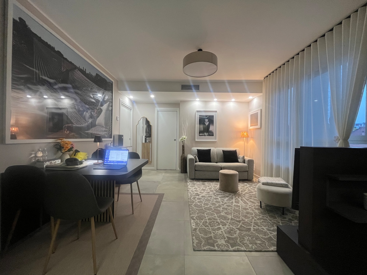 En el corazón del centro histórico de Alzano Lombardo se encuentra un apartamento luminoso y refinado, un oasis de elegancia a 10 km del aeropuerto de Orio (BGY) y a solo 7 km de la ciudad de Bergamo, accesible en coche o en el tranvía de las Valli TEB, con parada a pocos minutos del apartamento. Pensado para ofrecer el máximo confort después de un día de exploración o como espacio exclusivo para profesionales en viaje de negocios, es ideal para aquellos que buscan una estancia inolvidable.