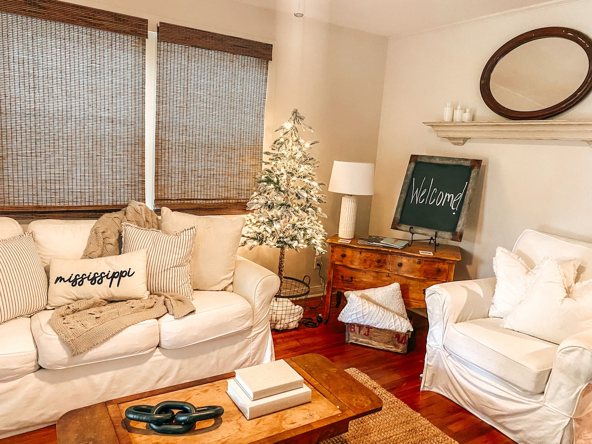 ¡Alójate en el lugar más lindo de la ciudad, renovado en febrero de 2025! Este encantador dúplex de 1 dormitorio cuenta con una cama tamaño queen, una acogedora sala de estar con sofá cama tamaño queen, cocina completa, lavadora/secadora y todo lo esencial. Camina hasta la galardonada vida nocturna, sabrosos restaurantes, tiendas de comestibles, una cafetería de tiendas de discos locales y el zoológico de Hattiesburg con el parque acuático Serengeti Springs. ¡La combinación perfecta de comodidad y aventura!