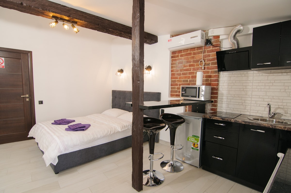 Diseñado para la comodidad de un viajero moderno, este lugar te hará sentir como en casa. Hemos dado un aspecto moderno a este espacio, al tiempo que hemos conservado las características originales de la construcción del siglo XIX. Esperamos que los huéspedes comprendan que los cortes de energía debidos a la situación actual en Ucrania están fuera de nuestro control. Se agregaron persianas artesanales y materiales originales en el techo para que sea único y acogedor.