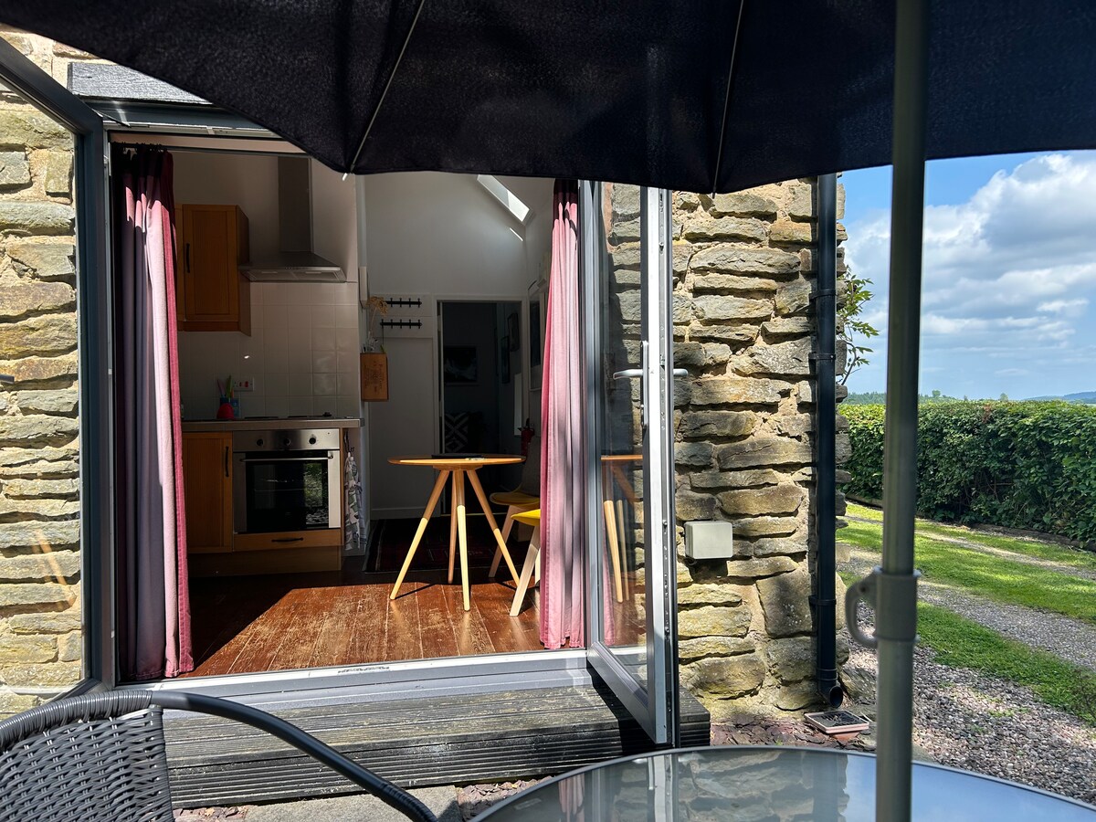 La escapada rural perfecta para 2-4 personas en Shropshire Way, en un AONB con carga para vehículos eléctricos. The Shippen, una renovación luminosa, espaciosa y de alta especificación, tiene un frontón de roble y vidrio orientado al sur y una terraza privada con vistas al impresionante valle de Linley para disfrutar de unas vistas celestiales. Una estufa de leña, calefacción central, decoración de diseño, una cómoda cama tamaño king, sábanas blancas impolutas, toallas suaves, mantas adicionales y una cocina bien surtida garantizan las comodidades del hogar durante todo el año. Un paraíso apto para perros para caminantes, ciclistas y familias.