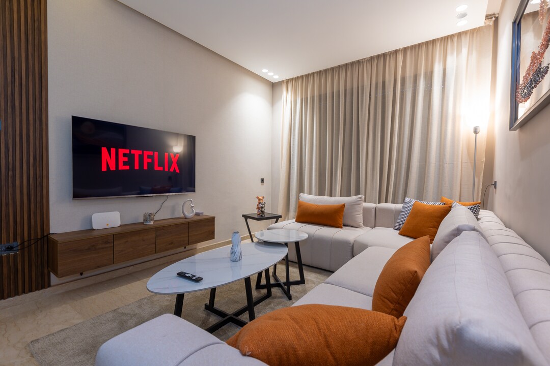 ¡Perla 403💎, un remanso de paz donde la elegancia de una residencia moderna se combina con la comodidad de los hoteles de 5* en el corazón de Casablanca! Relájese en una amplia sala de estar de diseño moderno, equipada con Smart TV de 55’ con Netflix e IPTV para noches de relajación absoluta. La habitación, un verdadero nido acogedor, le promete noches tranquilas y reparadoras ☁️ ¡Desde su balcón privado, admire las espléndidas puestas de sol sobre la ciudad, haciendo que cada momento de su estadía sea inolvidable! ✨