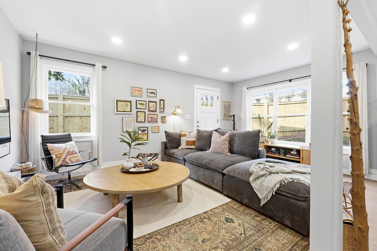 ¡Un apartamento sótano privado bellamente renovado y espacioso de 1 dormitorio/1 baño con entrada privada e independiente! El apartamento incluye electrodomésticos de cocina de acero inoxidable, wifi, un espacio de trabajo dedicado, dos televisores Fire de pantalla plana, lavadora y secadora y una chimenea eléctrica. Situado en un barrio residencial tranquilo, pero a solo 5 millas de la histórica plaza Marietta y a 5 millas del estadio Braves. ¡Disfruta de la paz y la tranquilidad sin dejar de estar cerca de la emoción del metro de Atlanta!