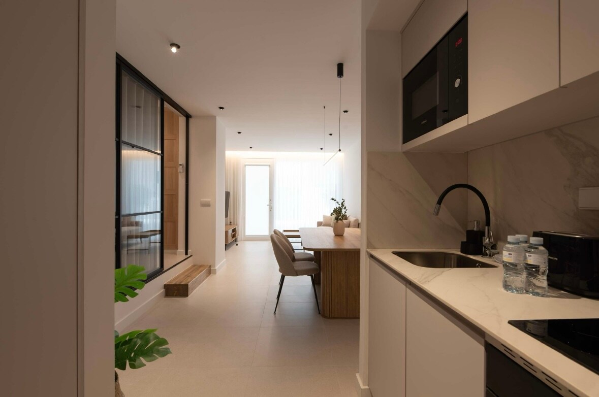 Apartamento recién reformado a menos de 100 metros del centro. Cuenta con una habitación, salón comedor, baño y cocina independiente completamente equipada. Además de la cama de la habitación principal tiene un sofá cama en el que alojar cómodamente a dos personas más. En la zona hay todos los servicios; restaurantes, droguería, supermercado, parking y zona comercial en el centro.