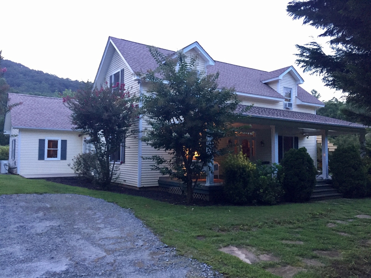 Hermosa granja familiar de mediados de siglo con wifi potente y vistas panorámicas al valle, la montaña y la puesta de sol. La granja cuenta con chimenea, 2 amplias salas de estar, 3 dormitorios, 2 baños y capacidad para 6 personas. Fácil acceso pavimentado de 3 millas hasta Main Street, Franklin. Muchas actividades culturales y al aire libre maravillosas en el histórico Franklin; centro de Asheville, Highlands, Scaly Mountain, Nantahala, Cherokee, Universidad de Carolina Occidental. Después de un ajetreado día de aventuras, disfruta de una hermosa puesta de sol en la montaña y un cielo lleno de estrellas.