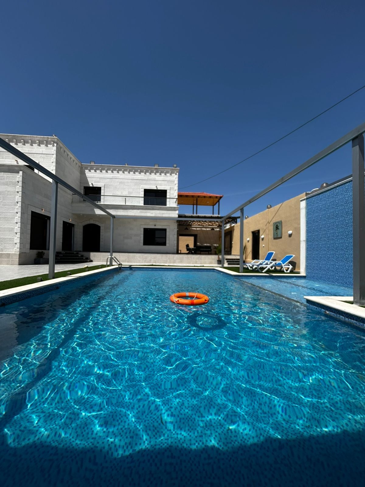 Al Mouhra Challet is a private and cozy getaway near Madaba, perfect for relaxing escapes. Enjoy a clean, comfortable indoor space and a beautiful outdoor area with a private pool and seating. Ideal for couples, families, or small groups seeking privacy, calm vibes, and memorable moments away from the city.