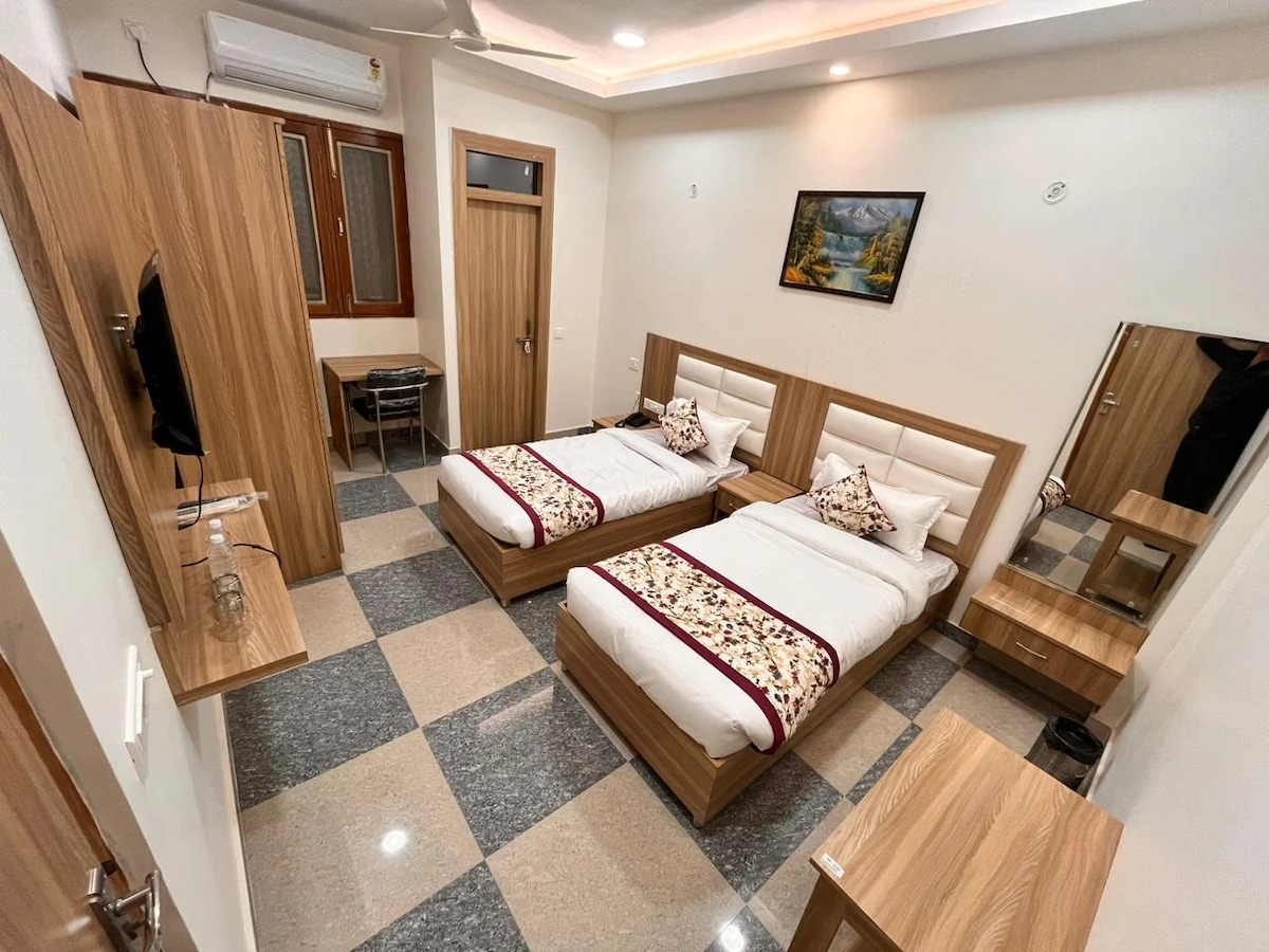 Budget-Friendly Family Stay Near Mahakaleshwar (900 m) Enjoy a clean, cozy, and comfortable stay at our guest house, just 900 meters from Mahakaleshwar Temple. Ideal for families and pilgrims, the room is well-maintained and affordable. Located in the main market area, with many eateries and shops nearby. Amenities include AC, Wi-Fi, geyser, clean bedding, and a peaceful environment—perfect for a pleasant, safe, and convenient stay in Ujjain with easy access to local transport and attractions.