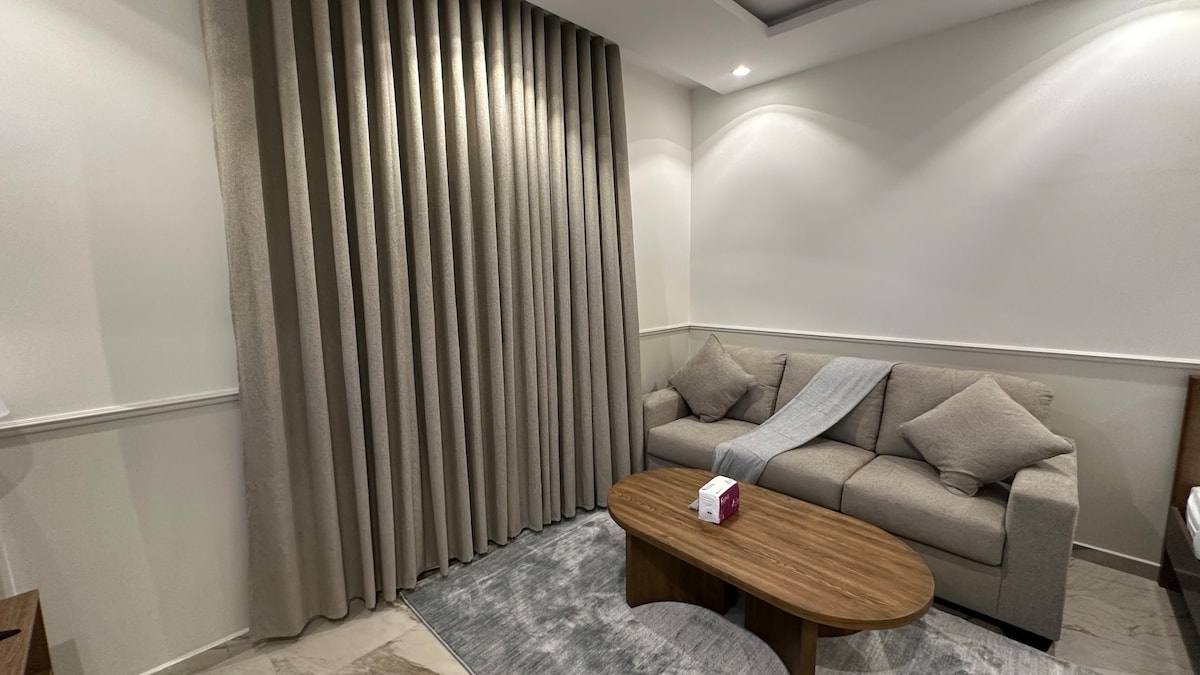 Disfrute de este departamento elegante y espacioso, que consta de una sala de estar, un dormitorio y un baño, con una superficie de 65 metros cuadrados (700 pies cuadrados). Ofrece tranquilidad en una ubicación privilegiada, cerca de todos los servicios de Al-Madinah Al-Munawwarah. El departamento se ubica en la zona de Sultana, en el barrio de Al-Qiblatain. Está ubicado en el tercer piso del edificio, con vistas a la fachada. El apartamento se encuentra a un kilómetro (0.6 millas) de la Mezquita de Al-Qiblatain y a cuatro kilómetros (2.5 millas) de la Mezquita del Profeta. El apartamento está equipado con cafetera, microondas, hervidor de agua, internet, Netflix y un televisor HD de 75 pulgadas con la aplicación SHAHID.
