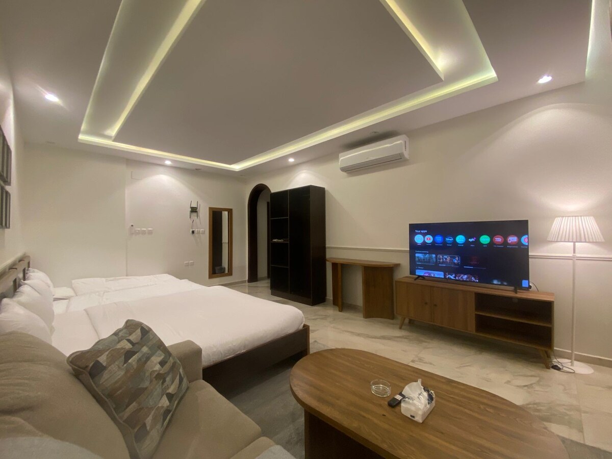 Apartamento nuevo y limpio, perfecto para familias y visitantes. Ubicado en una zona privilegiada cerca de la Mezquita del Profeta, la Mezquita Quba, la Pasarela Quba, el Bulevar Quba, Maqsad Quba y la Mezquita Jummah. El barrio ofrece todos los servicios esenciales. El departamento cuenta con: • Cómodo dormitorio y amplia sala de estar. • WiFi de alta velocidad. • Televisión inteligente con Shahid y Netflix. • Jabón, champú y toallas limpias • Llegada autónoma inteligente (no se requiere recepción) • Teteras, nevera, microondas, cocina eléctrica y cafetera.