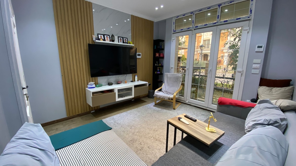 Relájate en este espacio tranquilo y elegante. Un apartamento entero, 2 habitaciones, planta baja, en la zona más elegante de Madinaty B10, a poca distancia del centro comercial All Season Park B10. Y a 5 minutos del centro comercial Open Air 🎉 Disfruta de tu café americano matutino con prensa francesa con aroma 👌 a café de mezcla casera hecho con amor 💕 mientras ves tu película favorita en Netflix 🍿