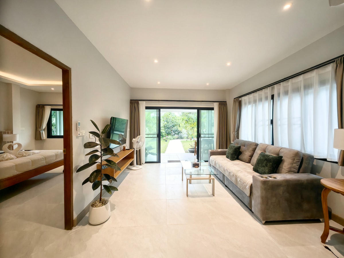 Bienvenido a Villa Apsara1, un refugio sereno en Maenam perfecto para familias y parejas. Disfruta de tres dormitorios con baño privado, una cocina totalmente equipada y una acogedora sala de estar con TV. Nuestro equipo de gestión especializado está a tu disposición para ayudarte durante toda tu estancia y garantizar una experiencia tranquila y relajante para toda la familia.