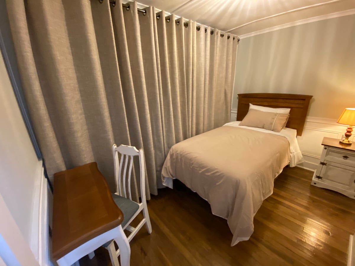 Casa interior pequeña para 2 personas, a solo 5 minutos del terminal de buses. Ofrecemos un descanso asegurado en un lugar céntrico de la ciudad pero apartado del ruido, muy seguro y completamente amoblado, la habitación cuanta con cama de 2 plazas, una Smart tv y wifi. Además estamos a unos pasos del mirador del Cerró la cruz, el conocido Mirador Colon y del Humedal Urbano Pudeto✨
