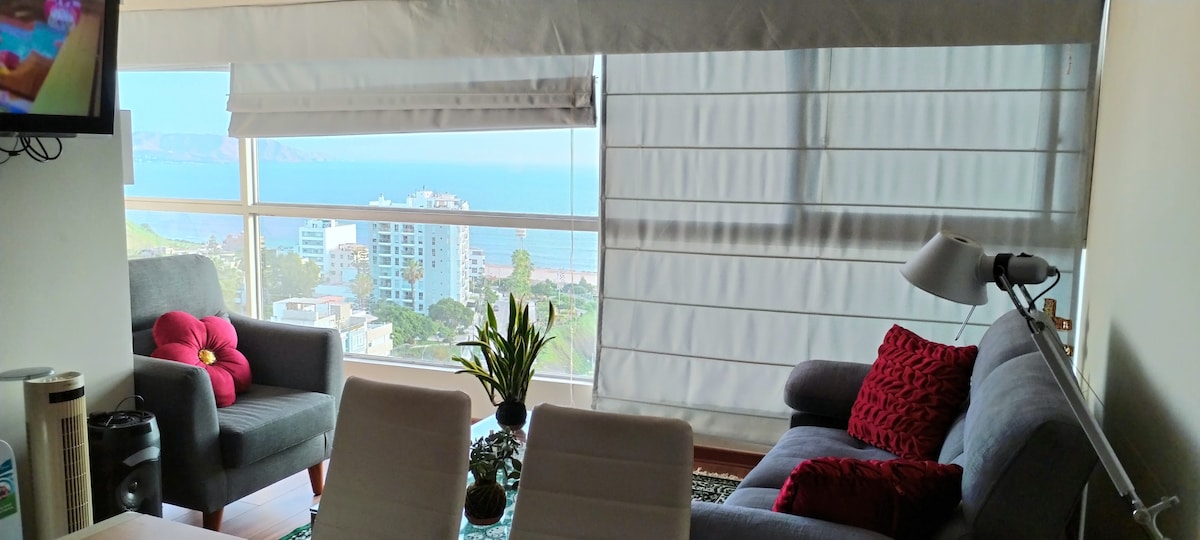 Lujoso Airbnb con impresionantes vistas al mar, que combina elegancia moderna y máxima comodidad. A una cuadra del NUEVO “Puente de la Paz”. Relájate en un espacio elegante y acogedor con aire acondicionado de última generación, wifi de fibra óptica ultrarrápida para trabajar a distancia y electrodomésticos de primera calidad. Inodoro TOTO. A poca distancia a pie de Maido, el restaurante número 1 del mundo (2025) y Central (2023), además de restaurantes de primer nivel, cafeterías artesanales, museos y el centro comercial Larcomar.