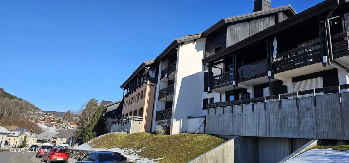 Chaleureux studio de 30m2 au premier étage d'une résidence très calme avec vue panoramique sur les aravis, le domaine skiable, et de magnifiques coucher de soleil,grande pièce à vivre avec coin repas canapé rapido,lits superposés , cuisine avec equipements, salle de bain avec baignoire, balcon plein sud avec salon de jardin et chaises longue, casier à skis et appareils à raclette et fondu pour les gourmands. Skibus gratuit au bas de la résidence,et commerces à proximité .parking gratuit