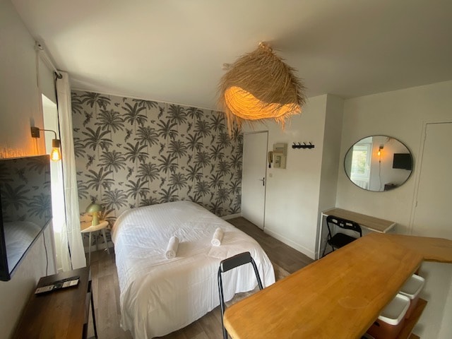 Situado a 10 minutos de Angers, a 10 minutos de las orillas del Loira, a 5 minutos del tranvía, nuestro estudio de 22 m2 renovado, se encuentra en el corazón de las Serres Angevines. Especial ola de calor, encontrará una pequeña cocina y una agradable zona de comedor. Cuarto de baño con ducha e inodoro. Acceso a internet y wifi. Ropa de cama nueva Espacio exterior con mesa y sillas para disfrutar de los días soleados Aparcamiento gratuito Posibilidad de alquilar bicicletas Prestamos especial atención a la limpieza del lugar y a la recepción