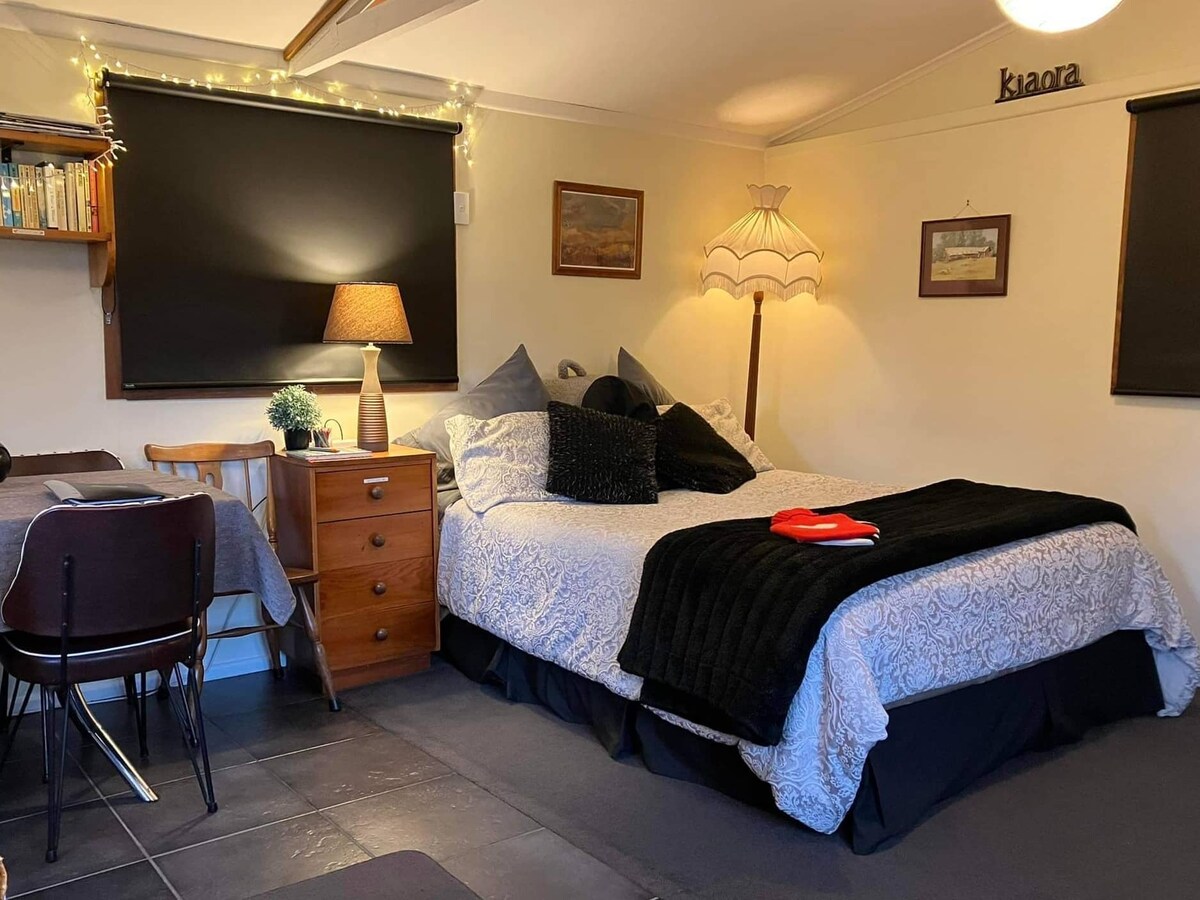 El «Retiro»: es un estudio de diseño de gestión familiar con acceso a un jardín de casa de campo, que te invita a sentarte y relajarte en... miel de temporada de nuestra propia colmena. Escondido y privado al pie de los Montes Grampianos, a solo 10 minutos a pie del corazón de la ciudad de Nelson. Gran lugar para ciclistas de montaña, excursionistas y asistentes a talleres. Pregunta si tienes alguna duda: hora de entrada, una noche, cama supletoria. Actualmente no se admiten mascotas, el jardín no es adecuado actualmente.