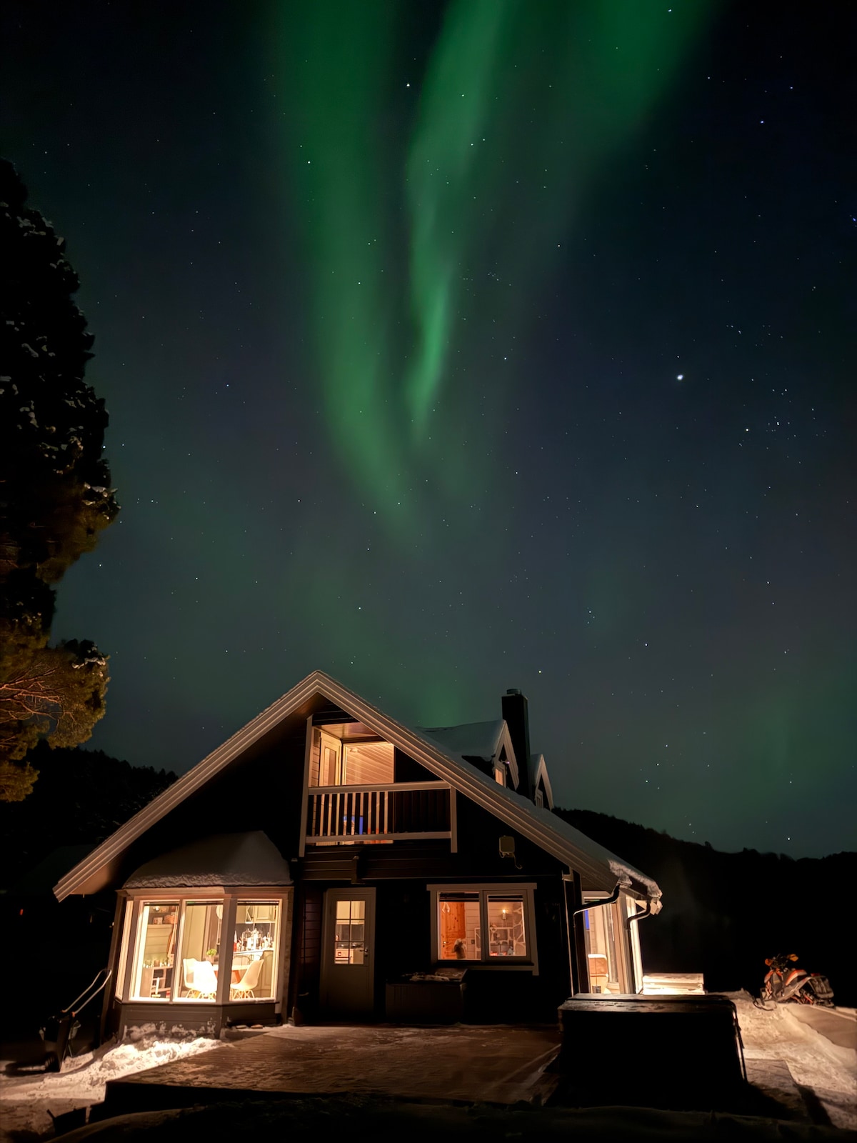 Esta pequeña casa de huéspedes tiene la vista más hermosa directamente desde la cocina y la ventana del dormitorio. Dado que no hay farolas alrededor, es el lugar perfecto para observar la Aurora y disfrutar de una escapada privada relajante en el Ártico. Vivimos al lado con nuestro hijo de 6 años y nuestro gato. Estamos en el trabajo desde las 8:00 están en casa desde aproximadamente las 4:30p. m. y los fines de semana. Servicios en las instalaciones: Carga de vehículos eléctricos 400 kr/Traslado privado 500 kr/Jacuzzi 1200 kr o 100 € por 2 días/Sauna 500 kr o 40 EUR por uso (solo en efectivo)