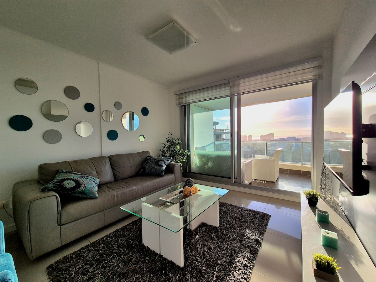 Disfruta de tu estadía en Punta del Este en un apartamento a estrenar, piso 18, con espectaculares vistas y muchísima luz natural en todos los ambientes. Edificio muy bien ubicado, con excelentes servicios: piscina climatizada, piscina abierta, gimnasio, barbacoa, cancha de futbol de césped sintético, microcine, sala de niños, adolescentes y adultos, garaje cerrado propio, recepción 24 horas, lavadero, etc El huésped puede elegir una cama king size o 2 sommiers separados