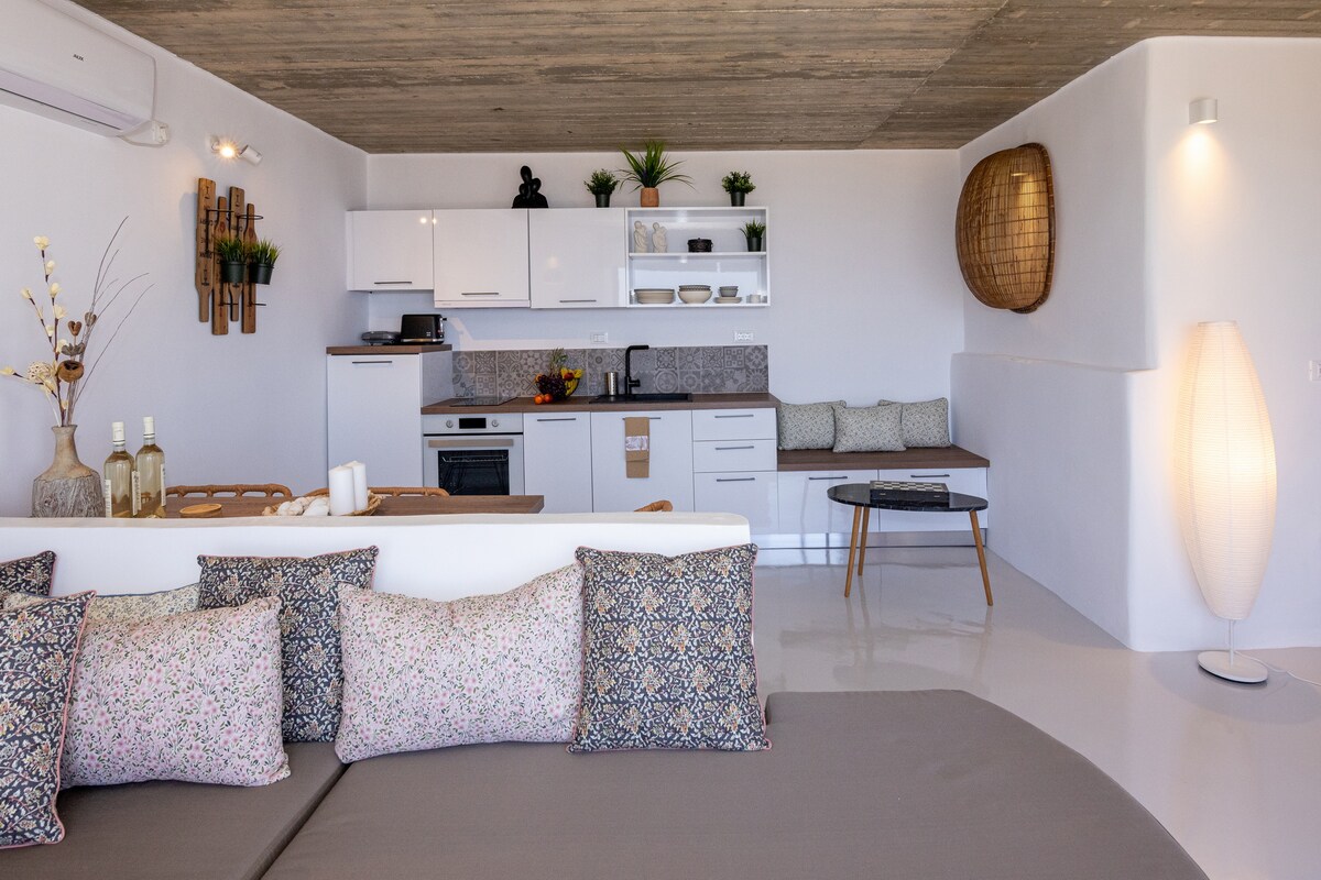 Escápate a tu casa exótica privada donde puedes disfrutar de la tranquilidad de las montañas, con el impresionante paisaje que recuerda a una imagen galáctica, ya que está rodeado de "piedras lunares" y consistente con la vista serena del hermoso mar Egeo. Con las ovejas y la casa Lunar como tus vecinos más cercanos, ¡disfrutarás de un completo aislamiento en este entorno tranquilo y tranquilo!