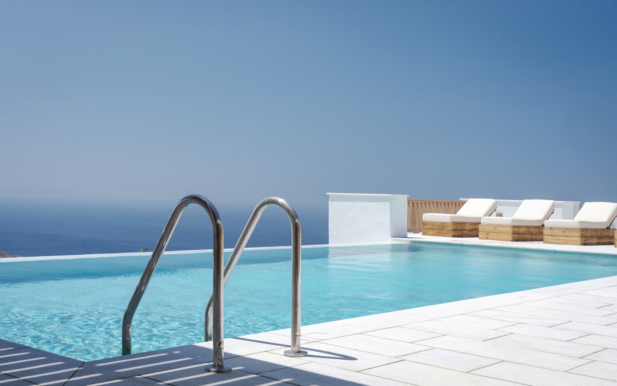 Auténtica villa cicládica en Tinos con vistas despejadas al mar Egeo. La propiedad consta de dos casas independientes en dos pisos, que ofrecen cuatro dormitorios en suite, dos cocinas y amplios espacios interiores y al aire libre. Disfruta de terrazas con pérgola, cenas al aire libre y un jacuzzi privado. Ideal para familias o grupos que buscan privacidad, comodidad y una vida de verano relajada en armonía con la tradición local. Premiado por Condé Nast Traveller como una de las estadías imprescindibles de Airbnb en Grecia.