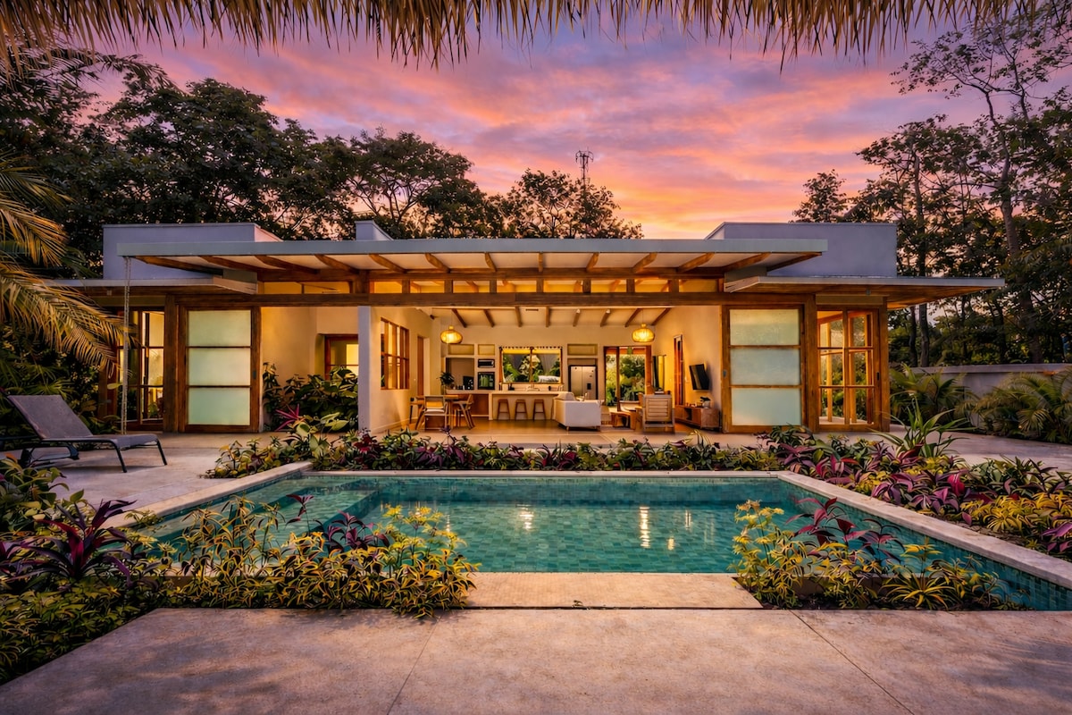A solo 3 minutos a pie de la playa Mar Azul y a 1 km de Santa Teresa, Riverscape House ofrece comodidad moderna en un entorno selvático sereno. Cuenta con una cocina totalmente equipada, una acogedora sala de estar con Netflix, lavadora/secadora y aire acondicionado. Arriba, disfruta de un dormitorio espacioso con vistas a la selva, baño privado y balcón. La terraza de teca al aire libre y la ducha de agua caliente completan este tranquilo refugio, a solo unos pasos de la playa. ¡Perfecto para parejas!
