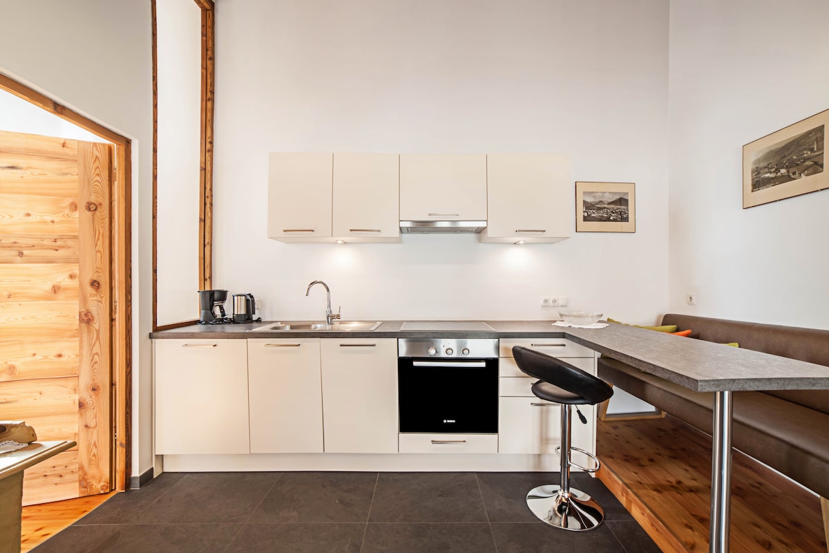 Helles, lichtdurchflutetes Apartment mit starkem Einbezug der Südtiroler Handwerks- Kunst. Modernes Design kombiniert mit Natürlichen Materialien aus Holz schaffen ein einmaliges Wohnerlebnis. Ob zu zweit, mit der ganzen Familie oder mit Freunden– es erwartet Sie ein besonderes Urlaubs-Zuhause. Uns als Genossenschaft war es beim Einrichten besonders wichtig dass wir alte Möbel upcyclen und aufwerten. Damit bekommen die Wohnungen in Glurns einen ganz besonderen Charme.