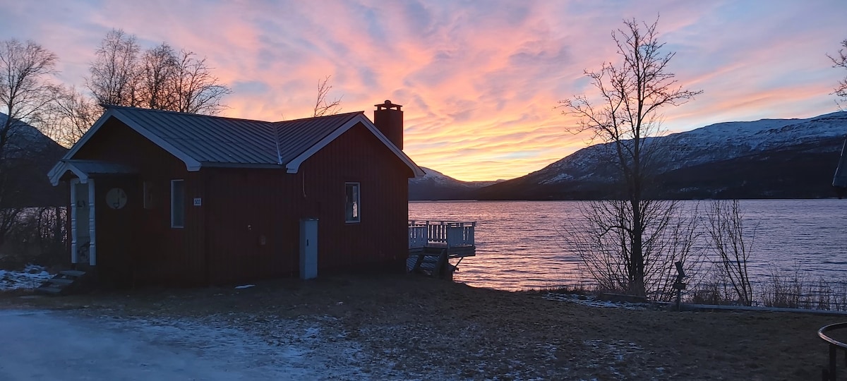 Nydelig hytte i et fredelig område. Fantastisk utsikt sobre Rostadvannet, fra stuevindu nesten på stranda. Ferske huevo kan kjøpes hos naboen. Hermosa cabaña en una zona tranquila. Impresionantes vistas, el lago Rosta delante y la montaña Rosta detrás de la cabaña. Auroras boreales justo fuera de la cabaña. Cerca del parque nacional de Dividalen, con muchos lugares para caminar en la naturaleza, tanto en verano como en invierno. Un lugar perfecto para relajarse y disfrutar de la naturaleza. Se admiten mascotas, excepto gatos y conejos.