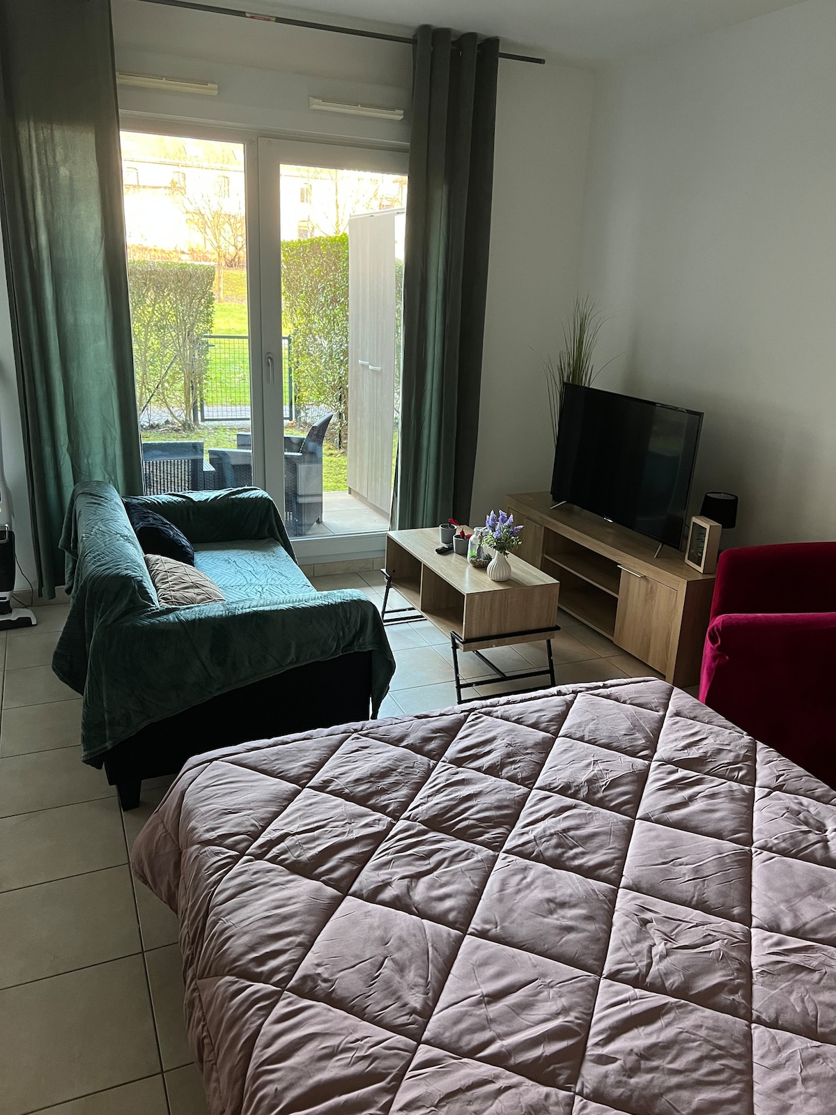 Nuestro estudio de 25 m2 en la planta baja de un patio tranquilo está reformado. Consta de una sala de estar, una cocina, una zona de dormitorio y un baño. Tiene una plaza de aparcamiento a su disposición. Situado a 5 minutos de la estación de tren y a 12 minutos a pie del centro de la ciudad, encontrará en el lugar todo tipo de tiendas (panadería, carnicería, quesería, delicatessen), pero también un Intermarché. En el barrio hay varios tipos de restaurantes (tradicional, pizzería, kebab...) a poca distancia.