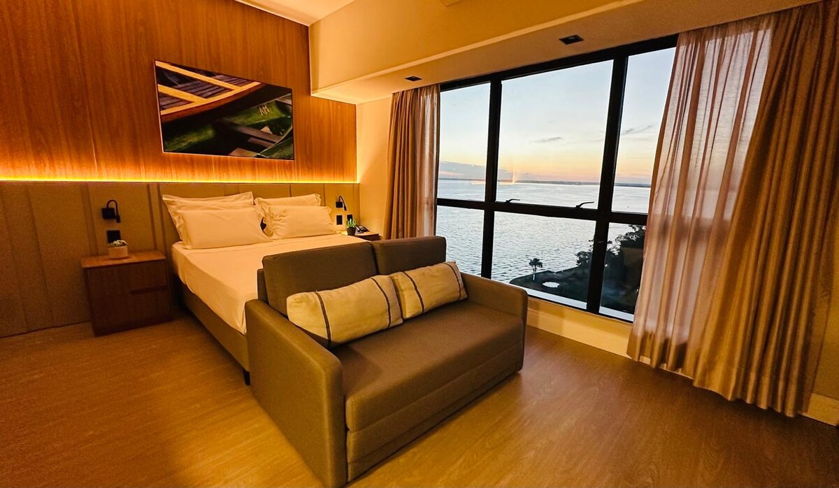 ¡Una vista deslumbrante del río y la ciudad! Donde el reflejo del agua crea un escenario sereno. Este hermoso apartamento ofrece exactamente eso: una combinación perfecta de comodidad y una vista impresionante. ¡Duerma bien con la mejor cama queen de Ortobom, y disfrute también de la encantadora piscina infinita del hotel! La propiedad tiene 1 cama queen y un sofá.