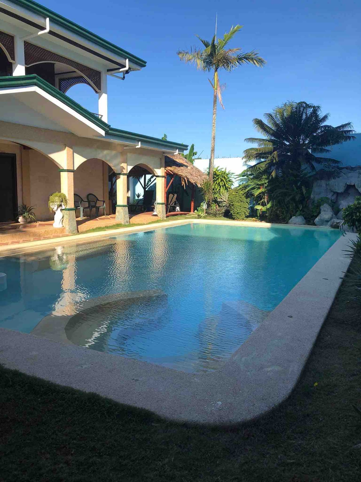 🏡 Amplia casa renovada de 300 m² con relajante piscina de hidromasaje en un vecindario seguro y acogedor. | A pocos pasos de restaurantes y bares 🍽️ | A 5 minutos del supermercado y del hospital 🛒🏥 | A 10 minutos de Mactan Newtown y de los complejos turísticos 🌴 | A 9 km del aeropuerto✈️ | 💦 Piscina de hidromasaje El servicio de hidromasaje está disponible bajo pedido para disfrutar de una experiencia relajante. CAPACIDAD: 👥 Máximo 6 personas 🛏️ Dormitorios según la reservación: 1–2 huéspedes (1 habitación) 3–4 huéspedes (2 habitaciones) 5–6 huéspedes (3 habitaciones) COMPLEMENTOS: ➕ Habitación adicional: ₱700 por noche (para servicios públicos)