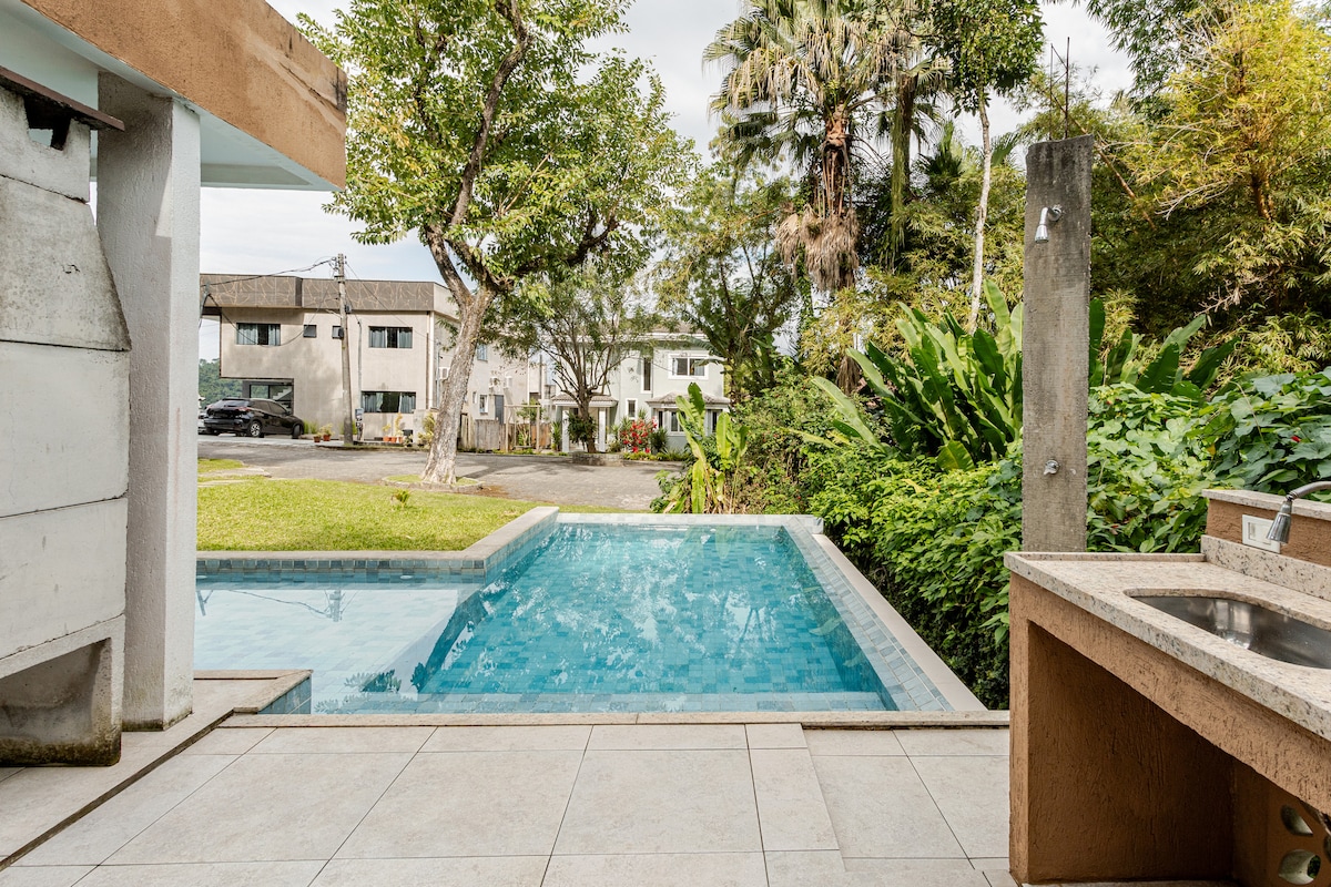 Em meio ao verde de árvores centenárias, a casa G7 é o ambiente perfeito para família que precisam confraternizar e recarregar energias. A casa conta com 5 quartos, sendo 3 suites. Todos os quartos com ventilador de teto e 4 quartos com ar condicionado. A área externa conta com terreno de quase 1.000 metros quadrados, muito bem divididos. A piscina é linda com "prainha" e ofurô pra completar. Um novo lançamento é o nosso gazebo. Com lindos bancos de madeira, tem feito muito sucesso.