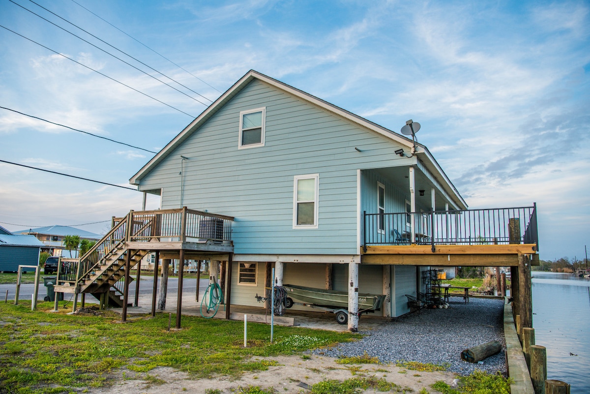 Experimenta la verdadera «vida en el pantano» en una comunidad pesquera tradicional de Luisiana. ¡Nos complace anunciar que nuestras renovaciones exteriores finalmente están completas, incluida una nueva y espaciosa terraza de 36 x 15 pies! 3 dormitorios/2 baños completos incluyen bañera de hidromasaje en el baño principal. Encimeras de granito, armarios de arce en todas partes. Cuarto de servicio de tamaño completo con lavadora y secadora. El primer piso está elevado 10 desde el suelo, con almacenamiento debajo. Convenientemente ubicado a pocos minutos de la pesca chárter y excelentes oportunidades de pesca autoguiada.