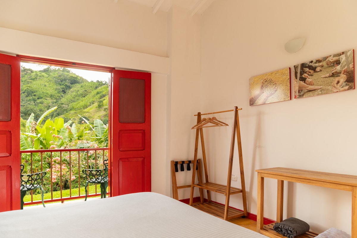 La Habitación Blue Mountain en Coffee Lodge es perfecta para descansar y reconectar con lo realmente importante: la tranquilidad, la naturaleza y el tiempo para uno mismo. Un espacio acogedor, lleno de calma, ideal para disfrutar del ritmo sereno de la finca.