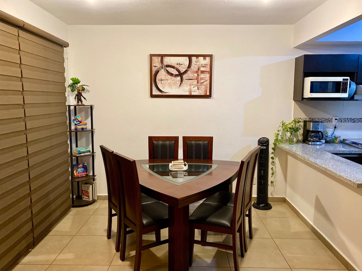 Nuevos departamentos a 3 minutos de la playa en carro o 10 minutos caminando, cerca de plaza mocambo, soriana, Walmart. 7 minutos de Andamar, Totalmente amueblado con diseño "fresco" contamos con puerta de acceso con clave. Cupo 2 personas máximo 3(sofá individual)cuenta con baño, cocina y comedor. Totalmente nuevo. No es un lugar para fiesta, está planeado para descansar y respetar a los otros inquilinos. Por eso se pide 10.30pm bajar música u otro tipo de ruidos. La limpieza es extrema.