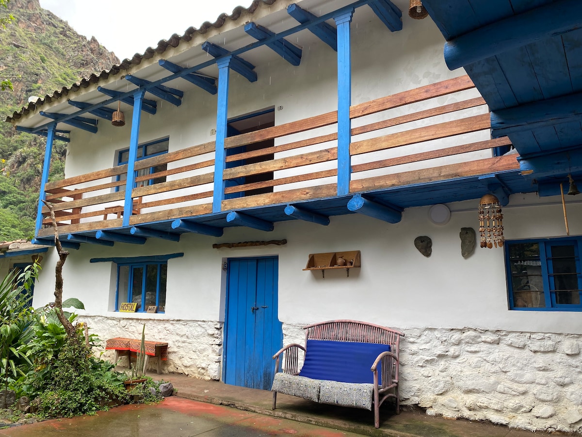 La casa tiene una terraza con vistas a las montañas y Fortaleza de Ollantaytambo, tiene 01 habitación con Cama Queen , 01 habitación Twin , 01 habitación con Cama King ideales para tener un buen descanso y pasar su tiempo en Ollantaytambo, tiene todo lo que necesita para su comodidad como baño privado con agua caliente las 24 horas La Casa cuenta con sala, comedor y comedor completamente amoblado, un escritorio para quienes llegan en plan de trabajo, buen Internet, ubicado en el Pueblo Inka.