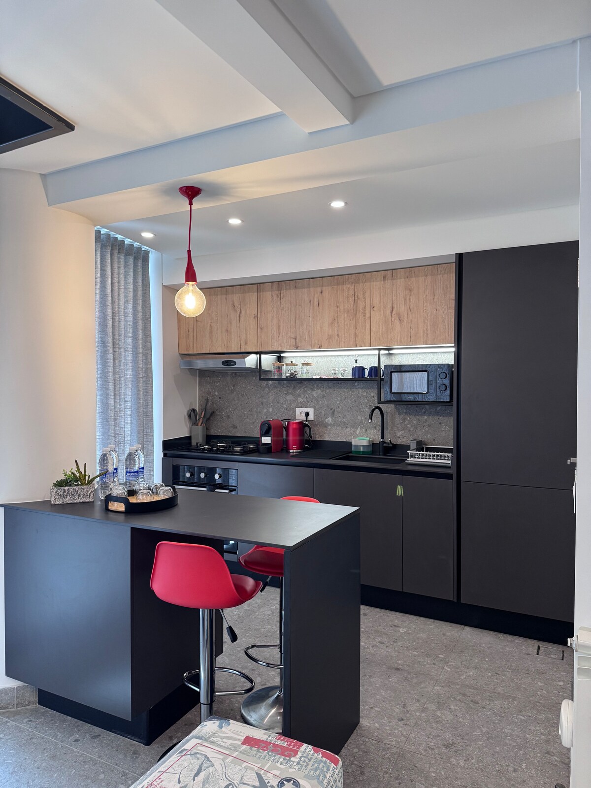 Disfruta de una experiencia elegante en este loft céntrico, dentro del vecindario más moderno y animado: Gemayzeh y Mar Mikhael. A poca distancia a pie de tiendas, restaurantes, pubs y galerías de arte. Está amueblado y equipado con buen gusto, lo que da ambiente al hogar: - Ocupación máxima: 2 adultos. - WIFI de alta velocidad GRATUITO. - Electricidad 24/24; - Aparcamiento subterráneo gratuito. - Agua y café de cortesía;