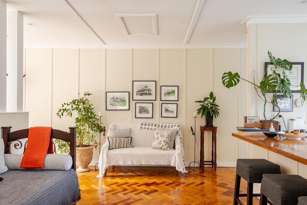 Estudio/dormitorio soleado, privado y compacto con un dormitorio y salón conectados. Es una casa diseñada por John Scott en la hermosa Havelock North. Disfrutarás de tu propia privacidad con acceso separado de la casa que es tranquilo y pacífico. Está a 20 minutos a pie cuesta abajo hasta el pueblo, que tiene una gran selección de tiendas y cafeterías. Fácil acceso a bodegas locales, carriles bici y todas las demás atracciones que Hawkes Bay tiene para ofrecer. A 25 minutos en coche de Napier y a 30 minutos en coche del aeropuerto.