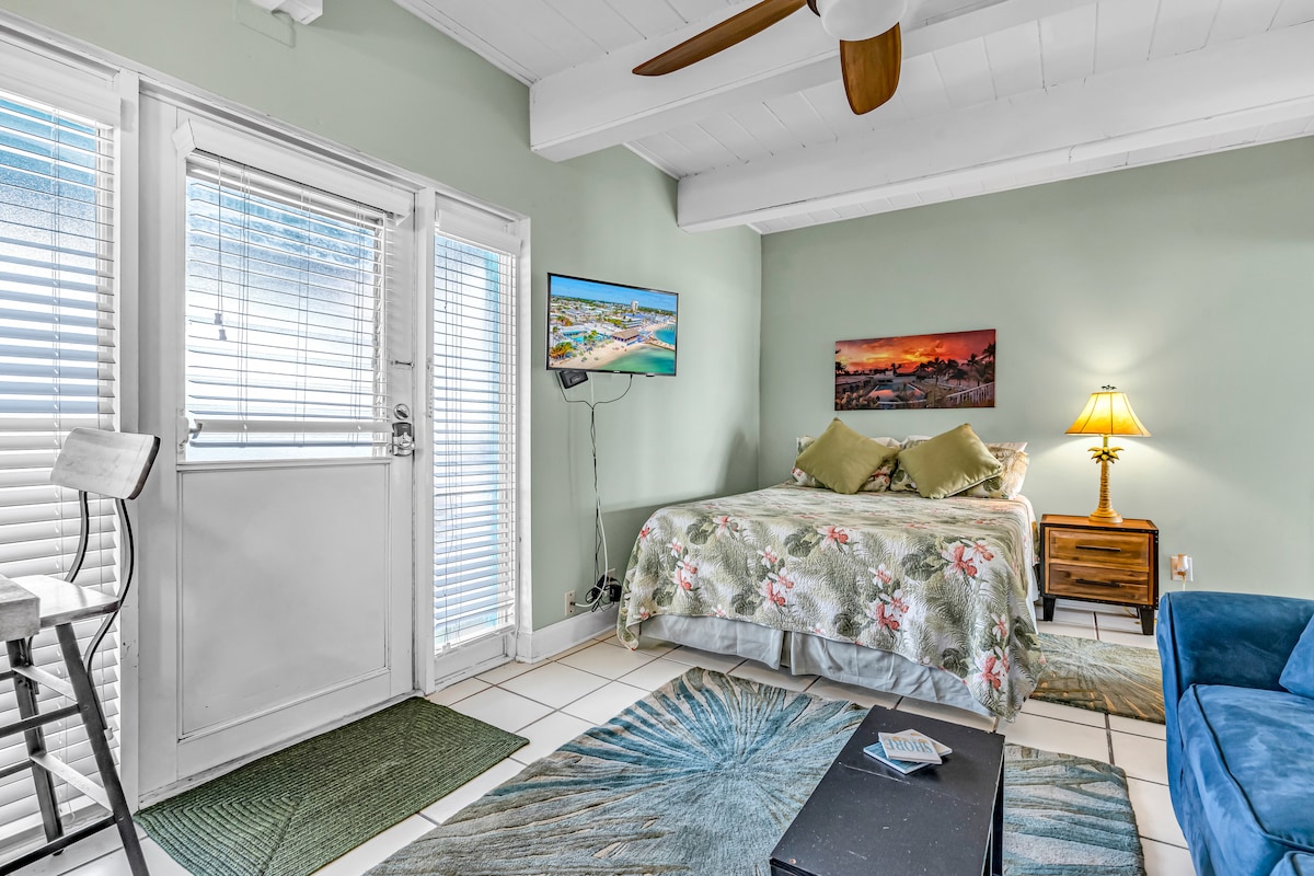 Nuestra suite de un dormitorio cuenta con dormitorio y sala de estar separados, lo que te ofrece el espacio y la comodidad para relajarte, dormir y comer. Acomódate en un gran espacio en suite con entrada privada. La suite ofrece todas las comodidades de un hogar. Desempaca y estírate en una elegante suite con sofá, TV de pantalla plana, wifi de cortesía y programación de cable premium o explora todo lo que los Cayos tienen para ofrecer. Aquí tendrás todo lo que necesitas, porque para nosotros no es un alojamiento temporal, es tu hogar.