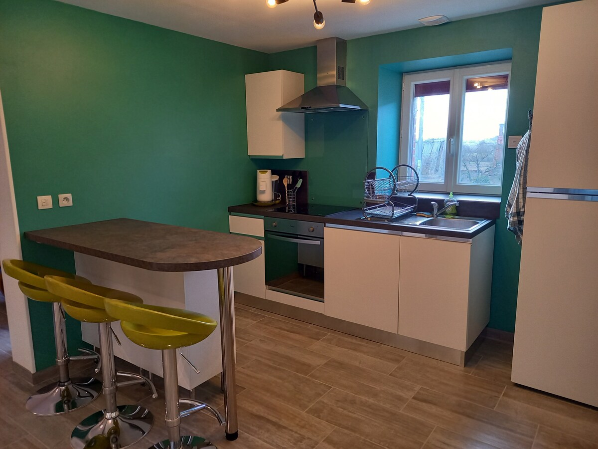 Appartement situé au premier étage d'une maison de village. Composé d'une cuisine semi-ouverte sur la salle à manger/salon avec cheminée, d'une salle d'eau avec douche italienne. Une chambre avec lit double , et une deuxième chambre avec lit superposé et un lit double. Le linge de lit est fourni mais pas le linge de toilette. Vous trouverez sur Youtube, une petite vidéo de présentation en tapant " airbnb-monestois ". -pour les pêcheurs notre maison se situe entre le canal du Berry et le Cher