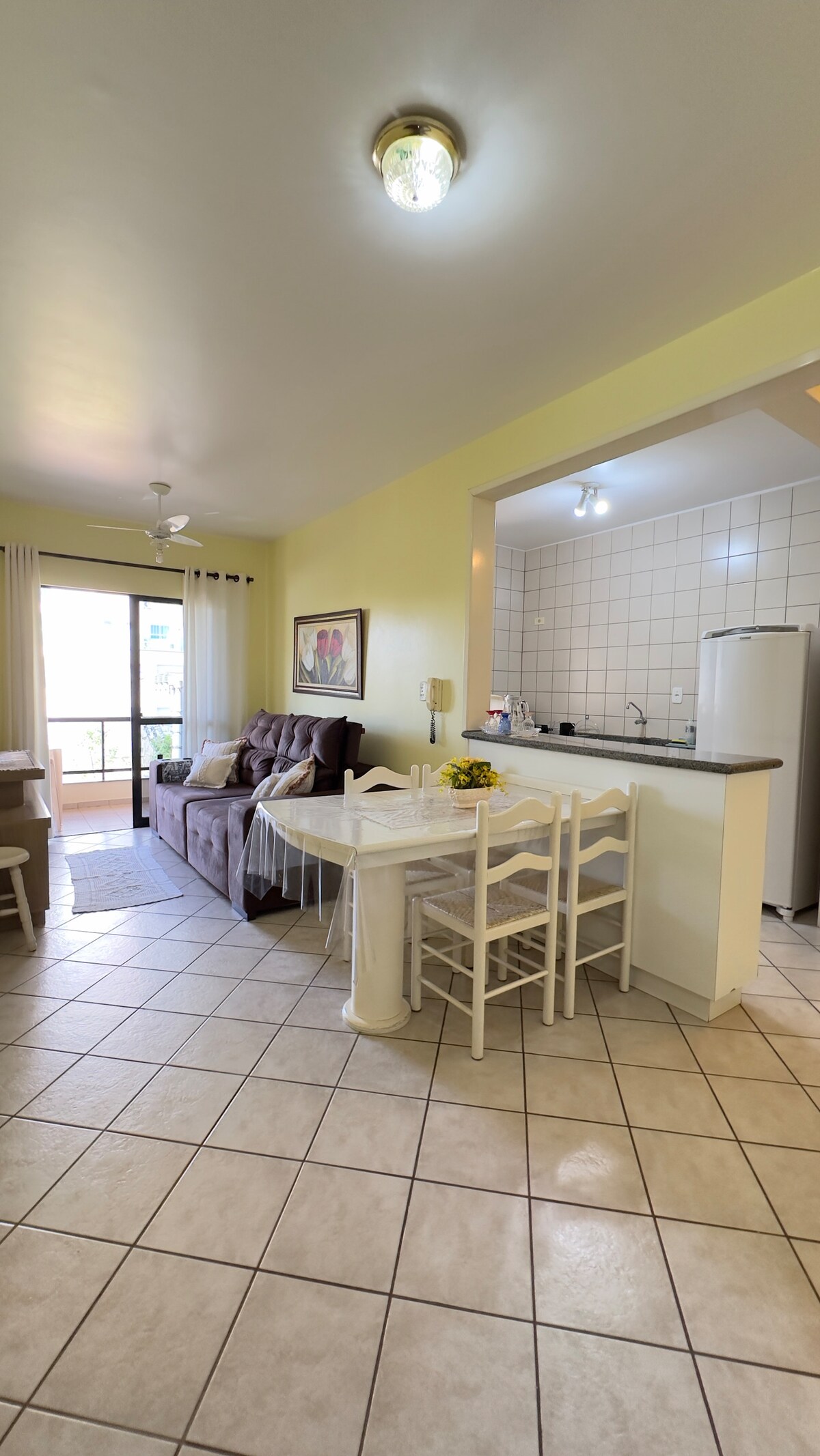 ¡Hermoso apartamento/diaria, con 1 dormitorio, en este una cama doble y dos colchones individuales! Cuenta con sala de estar con TV con canales gratuitos; baño; área de servicio; cocina completa y balcón con parrilla. El edificio está bien ubicado en la avenida principal, ¡con fácil acceso a todo! Se encuentra a 50 metros del Balneario de Aguas Termales de Marcelino Ramos, con un mercado en el primer piso del propio edificio. Con una vista única del río Uruguay, ¡ven a alojarte con nosotros!