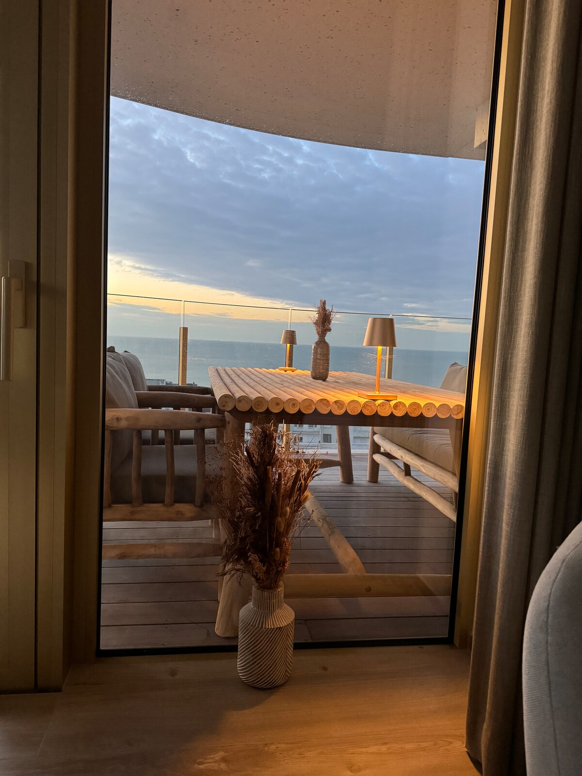 El modelo de departamento que incluye terraza con vistas al mar fue diseñado por SheCi be architects y se ha utilizado como sala de exposición durante años. Disfruta de la mesa en la terraza con vistas al mar o ve una película con experiencia cinematográfica por la tarde. Una experiencia interior total a pocos metros a pie de la playa, ubicada en el centro de la bulliciosa ciudad de Ostende.