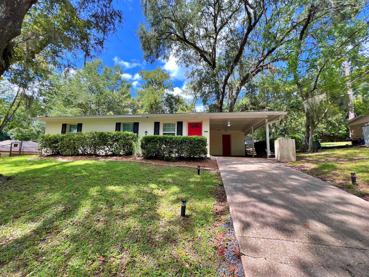 A 1 milla de FSU y FAMU, a 1 milla del centro y de Midtown. Recién renovado con características especiales. Cargador privado de vehículos eléctricos en el sitio, nivel 2, 40 amperios. El enchufe EV se puede utilizar como conexión para vehículos recreativos. La cocina tiene un horno tostador con función de microondas, convección y freidora de aire 4 en 1. Lavadora/secadora, máquina de hielo incluida. El extractor del baño tiene calentador incorporado. Tenis, baloncesto, pickleball, parque infantil al lado. Las cámaras de seguridad ven el exterior de la casa. CERCA DE TODO. INCLUYE EL NÚMERO DE HUÉSPEDES Y LAS EDADES CON LA SOLICITUD.