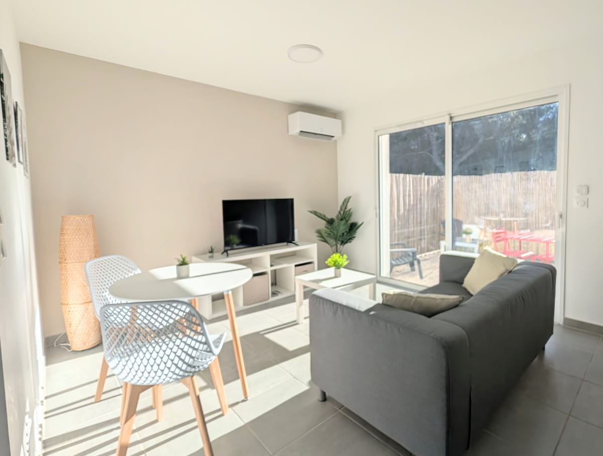 Este T2 a pie completamente renovado (¡con buen gusto!) es ideal para alojarse en pareja o en familia. Apreciará la planta de jardín independiente y soleada gracias a su terraza y barbacoa. bajo petición es posible tener a disposición 2 bicicletas. Está cerca de las playas de guijarros y arena (15 min), Aix en Provence, Marsella y Martigues (25/30 km), pero también del aeropuerto (10 min) y de la estación de tren TGV de Aix (15 min). Marie line y Robert te están esperando.